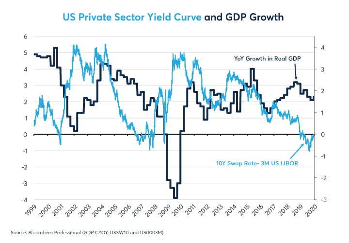 Figure 5: The US private sector yield curve is still inverted, possibly heralding slow growth in 2021