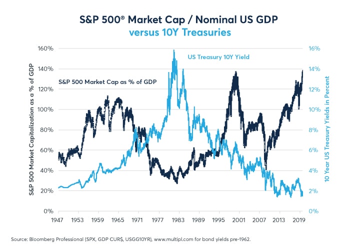 Figure 12: The equity market could maintain high levels of valuation if long-term rates remain low