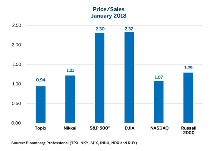 Figure 5: Japanese Stocks Also Have Much Lower Price to Sales (Revenue) Ratios.