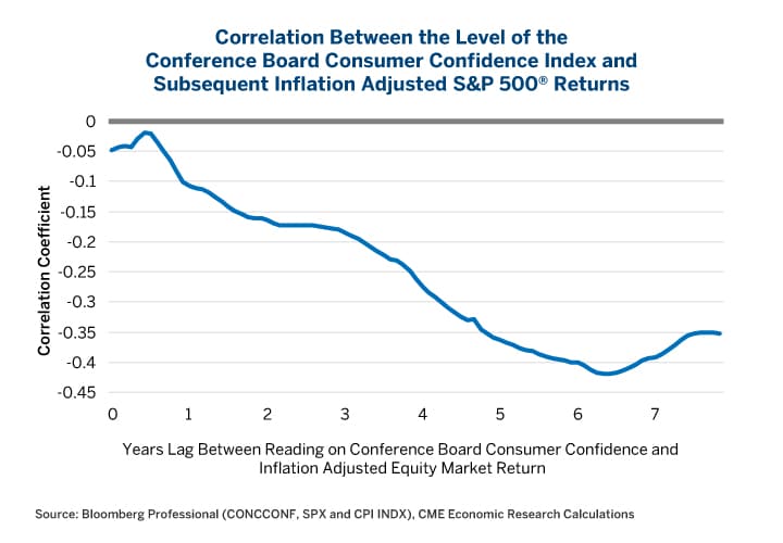 Figure 7: Consumer Confidence is Most Strongly Correlated With 5-7 Year Inflation-Adjusted Returns.