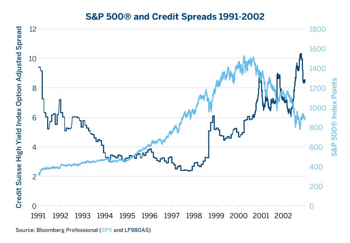 Figure 8: Credit Spreads Began Widening More Than Two Years Before Equities Peaked in 2000.