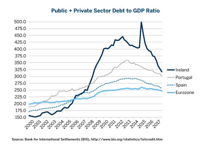 Figure 3: Ireland, Portugal and Spain are Leading Europe’s Deleveraging.