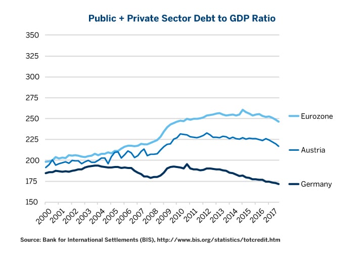 Figure 5: German and Austrian Debt Levels Continue to Fall as Well.