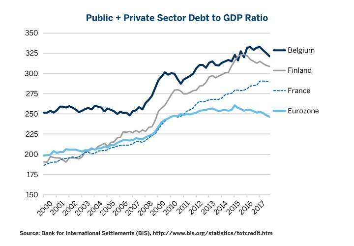 Figure 6: Debt Levels Have Started Falling in Belgium and Finland; France Leverage Ratios are Stable.