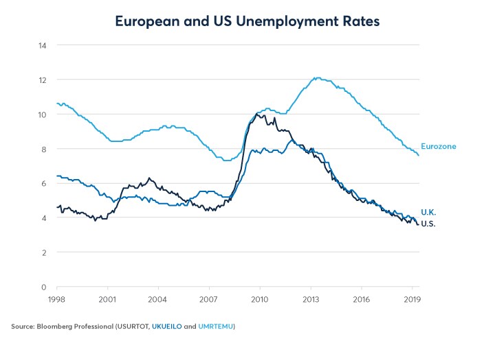 Figure 1: Lagging but Also Improving: Eurozone Unemployment The Lowest Since 2008.