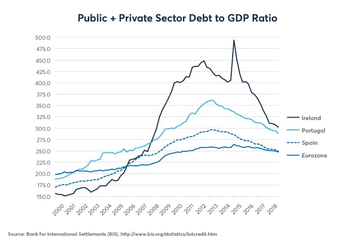 Figure 3: Ireland, Portugal and Spain are Achieving the Most Impressive Deleveraging.