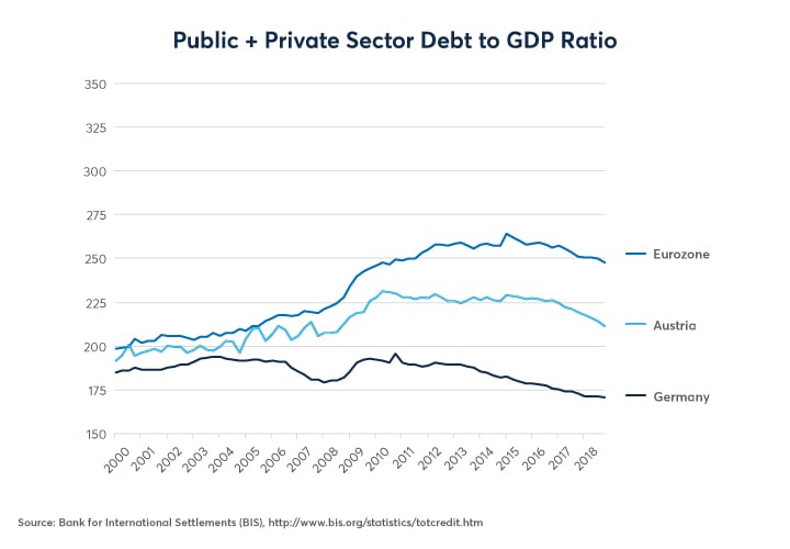 Figure 4: Germany and Austria’s Debt Levels are Arguably Too Low with Lots of Stimulus Potential.