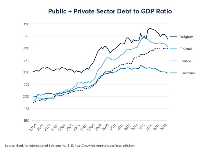 Figure 5: Debt Levels are Falling in Belgium & Finland, Stabilizing in France.