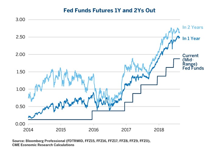 The Fed has indicated that it would raise rates two more times this year, and another five times through 2020. But there is some skepticism in the market because of the high debt load that could become difficult to service if rates are increased as many times as signaled by the Fed's "dot plot." Protect your investment portfolio from the uncertainty with futures and options on Interest Rate products