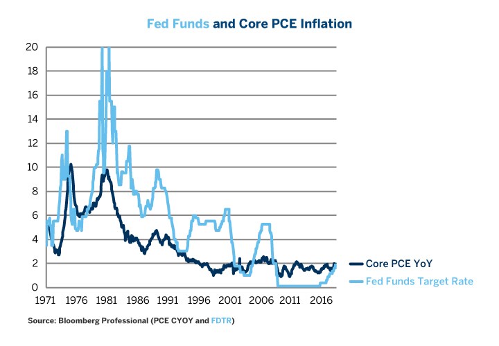For the moment, there are few concrete signs of overheating. Core CPI has picked up a few tenths of one percent but remains well within its range of the past quarter century and well below levels from the 1970s and 1980s. Core PCE, a broader measure, often preferred by the Fed, is even less alarming. Wages are rising by 2.7% year on year, which is slower than at similar stages in past economic cycles, despite exceptionally low levels of unemployment. The gig economy might produce low unemployment rates but even nine years of economic expansion hasn’t yet produced much of an uptick in inflation.