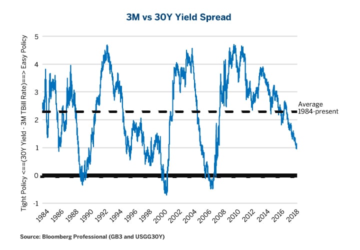 Figure 3: 3M-30Y has Averaged 230bps for the Past Quarter Century.