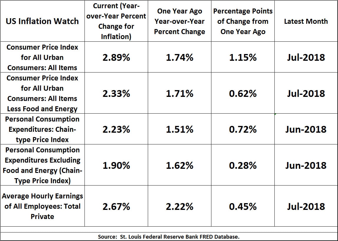 Part of the challenge in not raising rates too much is figuring out what neutral policy is. There seem to be three broad definitions based upon the dot plot, inflation and the yield curve. The closest that the Fed comes to telling us what it thinks neutral policy might be is once again in the Fed’s dot plot. Currently, FOMC members estimate that the longer term equilibrium for the Fed funds rates to be 2.875%. That’s close to the current level of yields (as of mid-August 2018) of both 10Y and 30Y U.S. Treasury yields. This suggests that unless there is a sell off at the long-end of the curve, that the “neutral” level for the Fed funds rate would bring the yield curve to flat. This is surprising given that flat yield curves often occur ahead of economic slowdowns and recessions. We note, though, that FOMC members may also be expecting the future to bring higher long-term Treasury yields, reflecting a higher inflation risk premium.