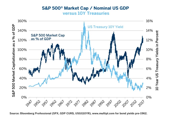 Figure 2: US Equity Aggregate Market Cap Has Rarely Been This High as a % of GDP.