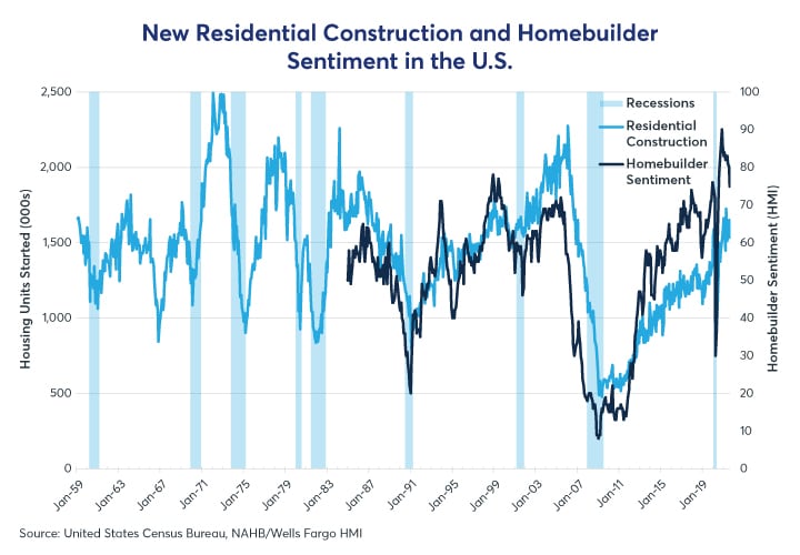 1. Weak housing supply and construction (Figure 6 and 7), as a result of languishing confidence over the past decade. Even as confidence has recovered, prohibitively high resource costs – particularly in lumber markets – have delayed the construction of new housing. Structural factors are also at play, including inhibitory zoning and permit regulations, which have made housing supply more inelastic in certain markets.