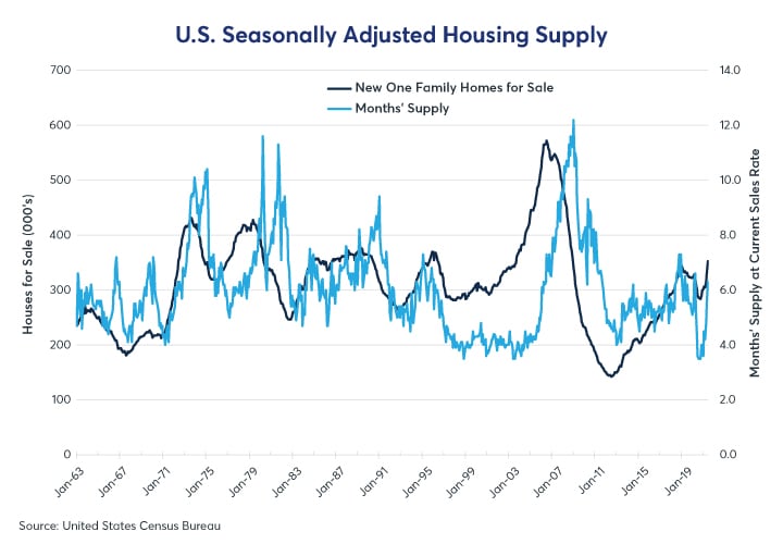 Figure 7: U.S. monthly housing supply fell to 3.5 months in October 2020, a record low