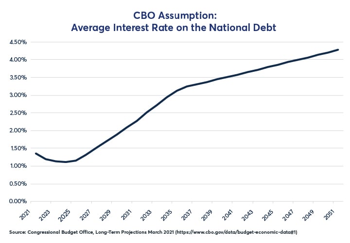 Figure 6: CBO projects financing costs hitting 4.38% on average for the national debt by 2050