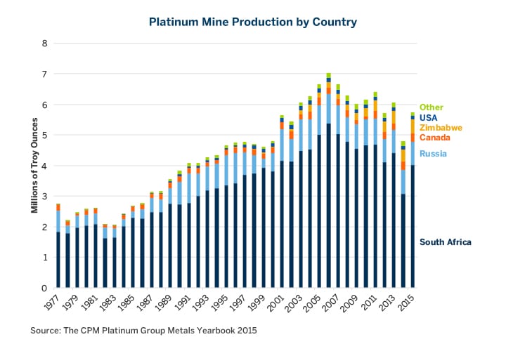 Figure 4: Platinum Mining Production Is Concentrated And Declining