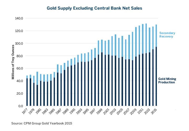 Figure 8: Gold Secondary Supply is Expected to be 27% of Total Gold Supply in 2015