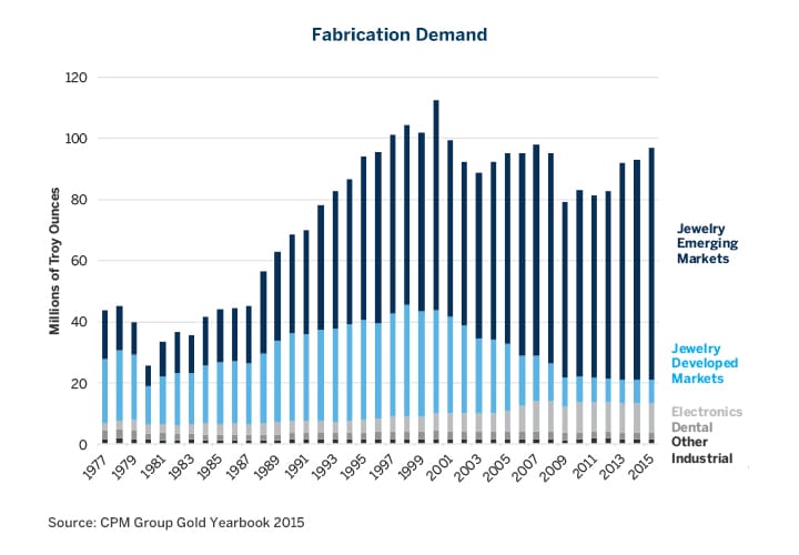 Figure 10: Gold Fabrication Demand is Much Less Reliant on Industrial Uses