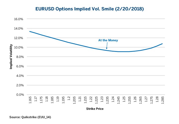 Figure 1: ‘Smiling’ but not Happily: Downside Risks on EURUSD over Next Two Weeks.