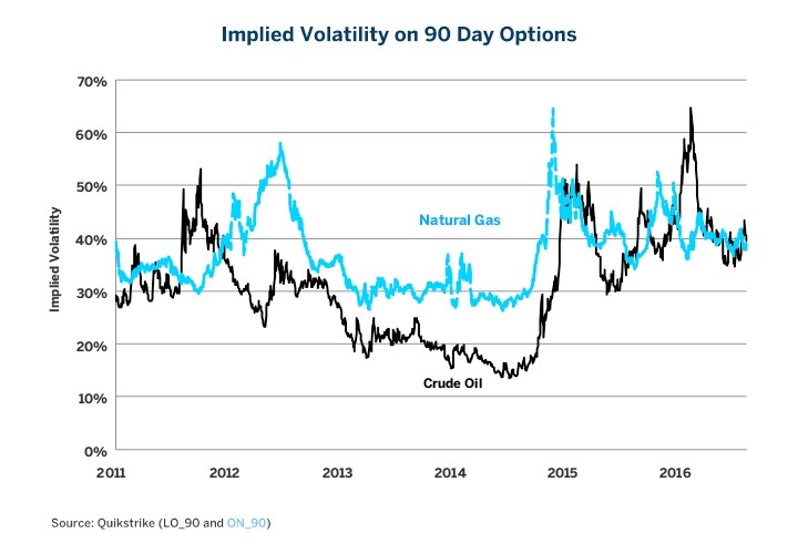 - Natural gas futures and options may be much too complacent regarding the possibility of prices spiking in 2016 and 2017.