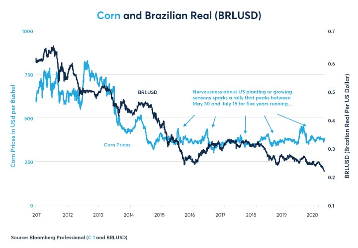 Figure 10: Corn may be vulnerable to another leg down in the Brazilian Real