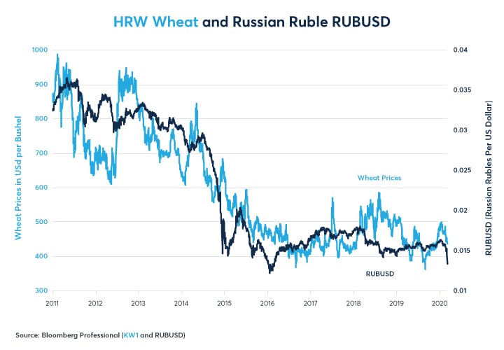 Figure 12: Wheat may weaken if the Russian ruble falls in response to lower oil prices