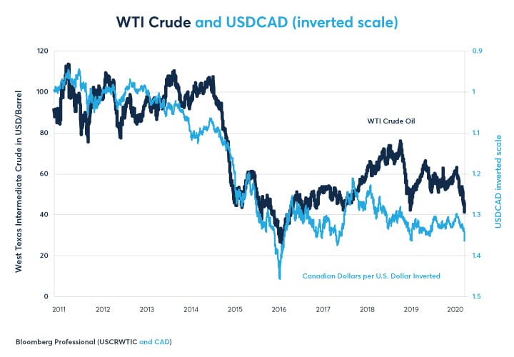 - Falling energy prices could roil currency markets, especially for Canada, Norway and Russia