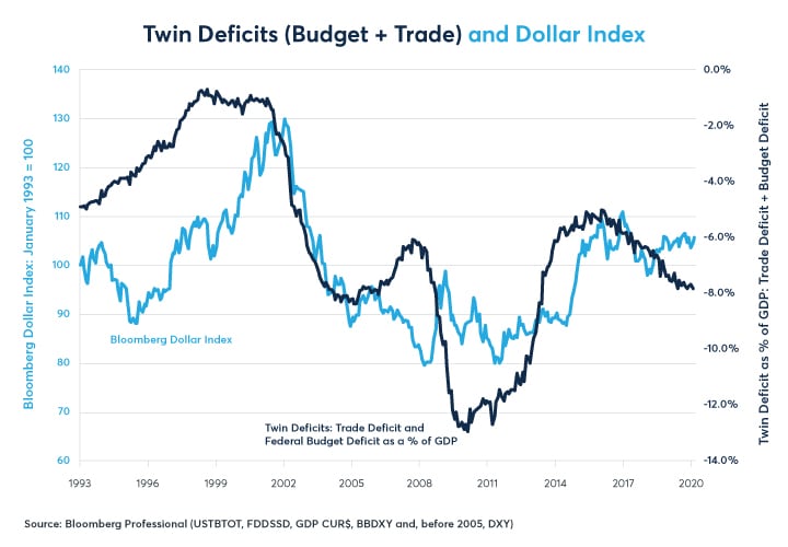 Figure 16: A 5% of GDP US budget deficit + a 2% trade deficit plus lower rates, might prevent a dollar rally