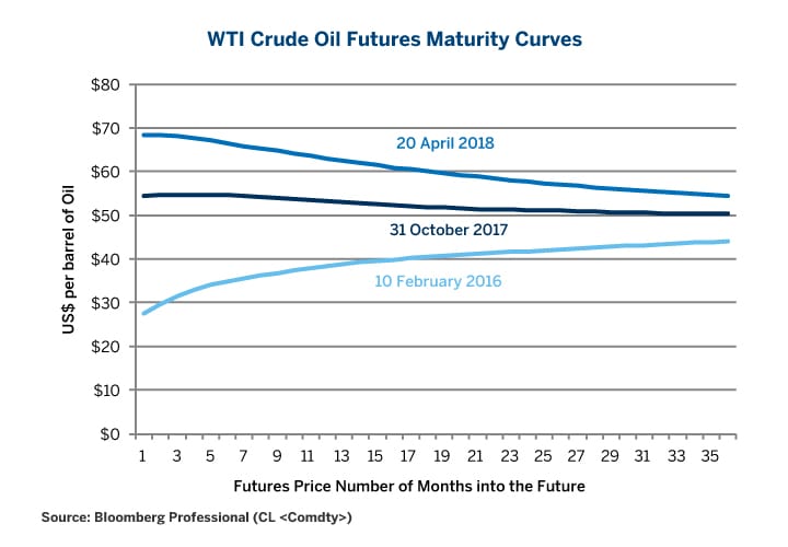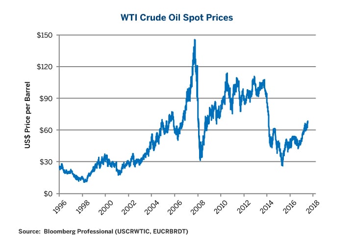 The collapse in the price of oil that began in the fourth quarter of 2014 and hit its trough in February 2016 was a delayed response to the massive increase in supply brought about by the U.S. shale oil revolution. The first stage of the price recovery during 2016 into the $40 to $55/barrel range was mostly an unwinding of the price, having been driven considerably below the marginal cost at which U.S. shale producers could profitably extract oil. During the oil price slide, there was selling by institutional pension and endowment funds, mostly through third-party managers, as these funds cut their asset allocation to commodities in general and oil in particular. There were also forced liquidations due to financial distress among certain oil market participants. Once the asset allocators had rebalanced and the financial distress selling had ended, the oil price drifted back up to better reflect the supply economics of the shale extractors who were emerging as the swing producers to challenge OPEC in the global market.