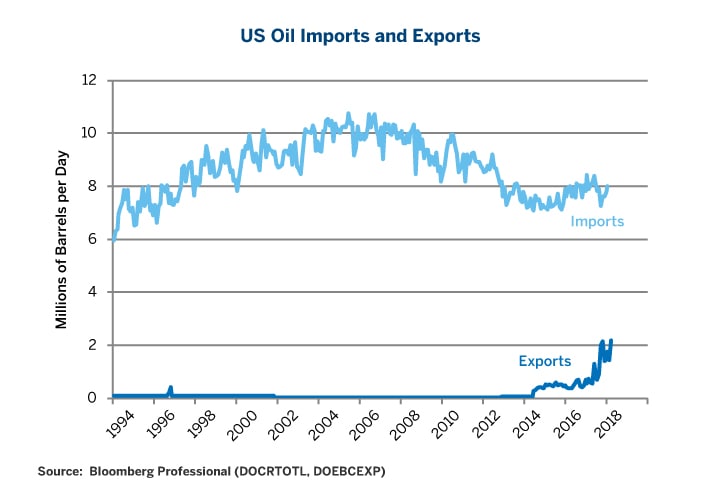 Oil prices are rising, driven by strong global growth and the reemergence of a Mideast risk premium. The market dynamics of this round of oil price increases, however, are strikingly different from recent episodes, such as in 2008 or 2012-2013. There are two key differences this time around that deserve our focus: (1) shale oil supply may respond more rapidly to price incentives than older technologies, and (2) the U.S. is now an oil exporter (as well as importer). As we explore these two topics, we will see some special nuances and caveats, too.