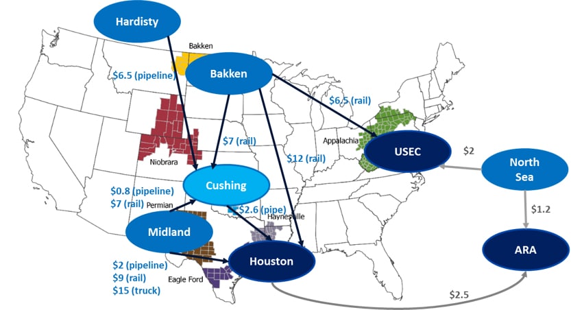 What also is striking and, perhaps under-appreciated, is how much capacity the US has to increase production further should prices rise to a level that would incentivize renewed investment in regions like Bakken, Eagle Ford and Niobrara. Those areas saw strong production growth prior to 2014 when oil was trading in the $80-$115 per barrel range. Since the 2014-16 oil price crash, production growth has concentrated in the Permian basin, which is better connected with pipelines than the other regions to the pricing center in Cushing and to the export terminals in the Houston area.