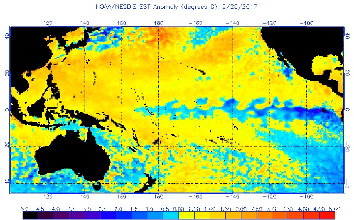 Figure 2: Colder-Than-Normal Water Appearing Along Central, East-Central Equatorial Pacific.