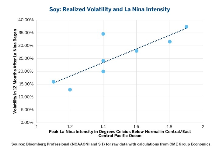 - Generally speaking, the stronger the La Niña the higher the degree of volatility in agricultural markets.