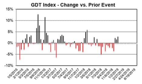 After sliding to the lowest level in over 2 years, the GDT index has increased in each of the last three events. On January 2, the index hit the highest point since mid-September. Volumes were lower for WMP and SMP, which likely contributed to some of the price strength. The uptrend in prices is expected to continue given tightening global supply and demand conditions and stepped up Chinese buying.