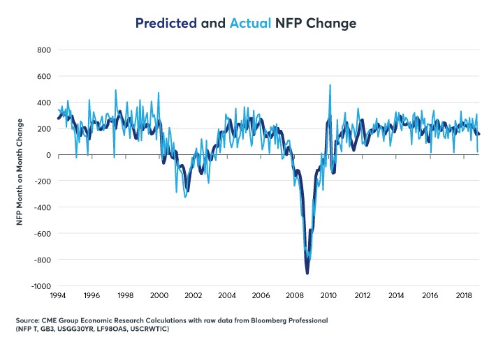 The past two employment reports took markets on a wild ride, with 311,000 jobs created in January but only 20,000 in February. If you average the two, however, U.S. employers have been creating about 165,000 jobs per month so far in 2019, which is close to what our model suggests is the most likely outcome for the March employment report due out on April 5: +157,000 jobs.