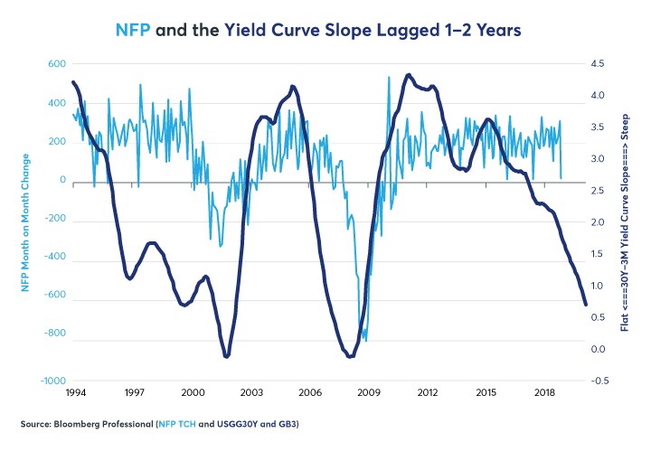 - Tight Fed policy and a flatter yield curve threatens to slow employment growth over the course of 2019 and 2020.