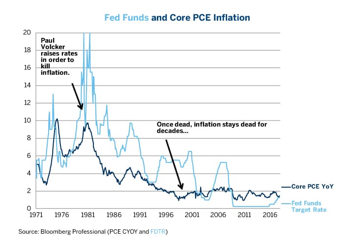 - With inflation so low, the Fed, in our view, has no reason to be in such a hurry to hike rates and could responsibly take a slower approach unless it has some legitimate reason to think that higher inflation is just around the corner.