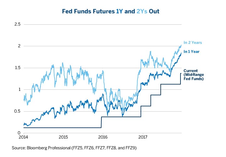 Figure 6: Fed Funds Futures Price 2-3 Rate Hikes in Total for 2018 and 2019.