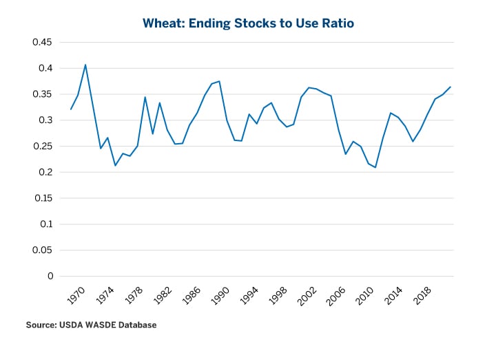 Figure 2: Ending-Stocks-to-Use Ratio Shows Near-Record Inventory.