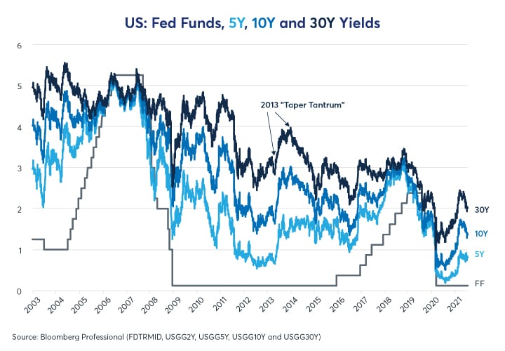 Figure 1: 10Y and 30Y Treasury Yields Fell in Q2 2021 Even as Inflation Surged