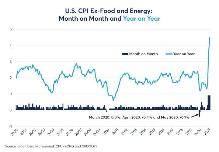 Figure 3: Core CPI Rose at 9.9% Annualized Pace in Q2 2021 and 4.5% YoY, the Highest since 1991