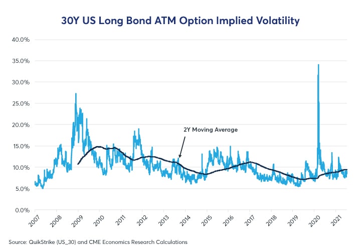 Figure 4: Implied Volatility on Treasury Long Bond Options is Close to Post-2007 Median Level