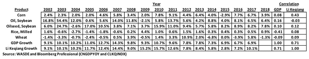 Figure 4: Li Keqiang Dominates Official GDP Insofar as Correlation with Future Corn Prices is Concerned