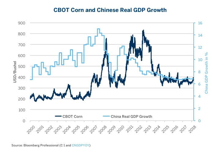 Figure 2: Moves in Corn Prices have Often Lagged Changes in the GDP Growth Rate