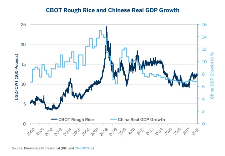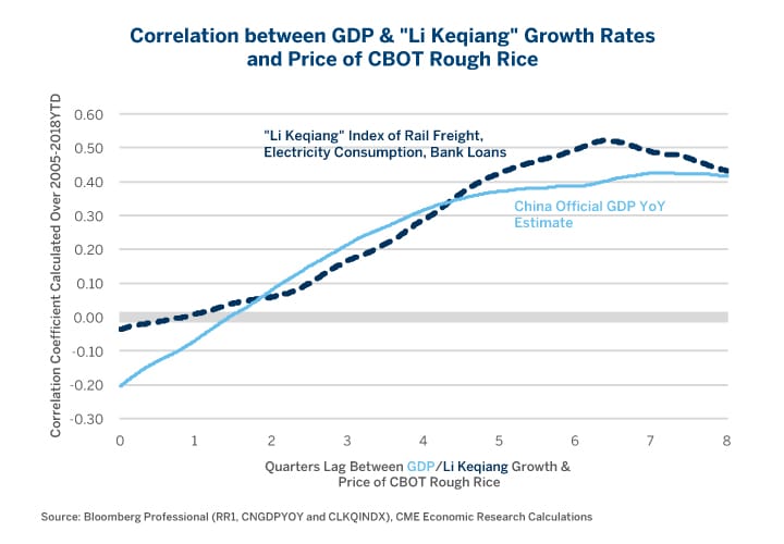 Figure 9: Rough Rice Often Lags Growth in the Li Keqiang Index