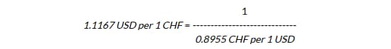 E.g., you may see a spot quote for the Swiss franc vs. U.S. dollar as 0.8955 in European terms. This translates into 1.1167 in American terms as used in CME futures markets.