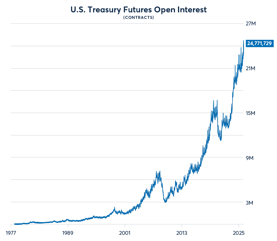Outsized trading activity across the USD curve has driven futures open interest (OI) to its highest level ever of 42M contracts, as market uncertainty has put efficient risk transfer front-and-center for participants.