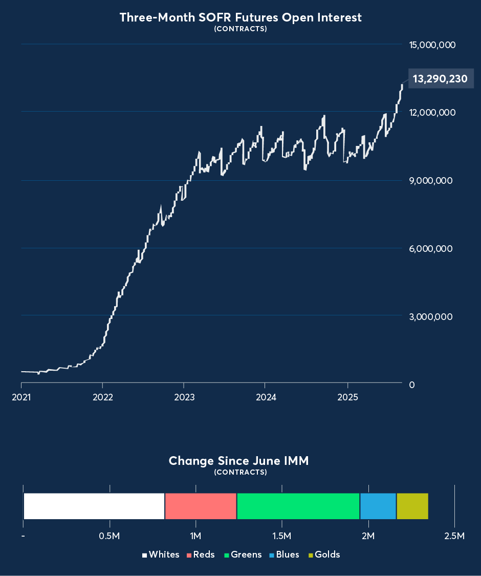 SOFR futures OI reached 14.9M, with new highs in both Three-Month SOFR (SR3) and One-Month SOFR (SR1) futures.