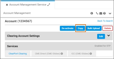 - Review the Account Settings and Services (to ensure it is correct), then select Copy.